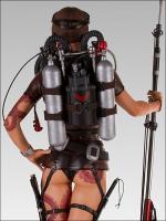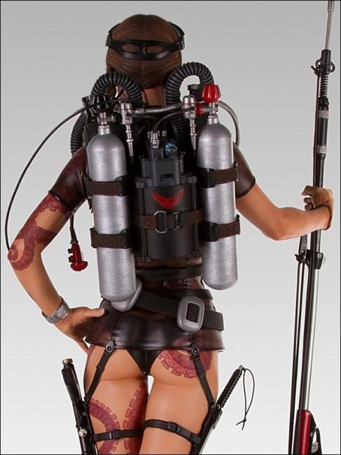 From the individual zipper teeth on her translucent wetsuit to the stitching on the straps for her oxygen tank,