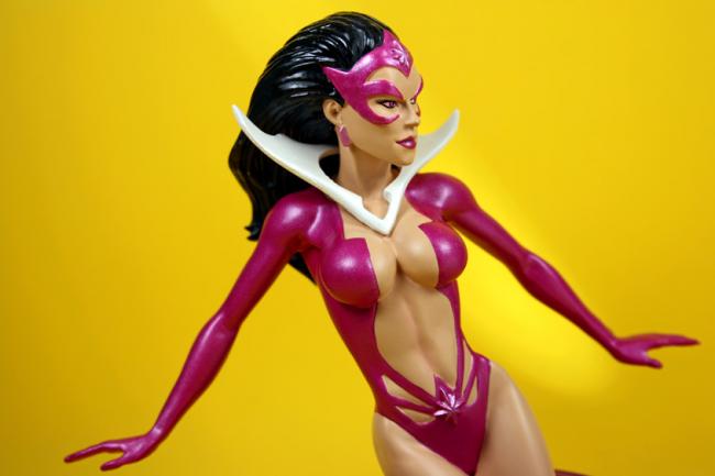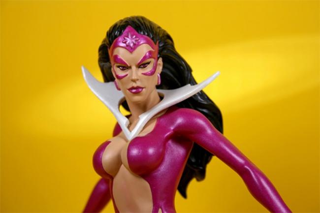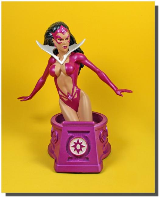 Here was made a subset of the ongoing Heroes / Women / Villains of the DC Universe bust series to cover the Blackest Night storyline that played out in the Green Lantern comics. They released a bust for each color of the Lantern spectrum for this sub-series, and Star Sapphire was the Violet Lantern character. She was limited to 3,500 pieces, and her bust reflects the Violet Lantern ring emblem. They later came out with a classic costume Star Sapphire bust.