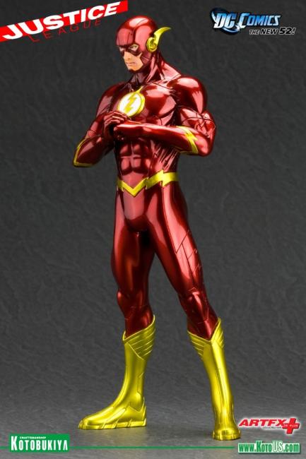 The line of DC Comics “New 52” ARTFX+ Statues continues, capturing the new looks and costumes of heroes in the Justice League. Racing to join the previously released Superman and Green Lantern comes the Scarlet Speedster and guardian of the Gem Cities, THE FLASH!