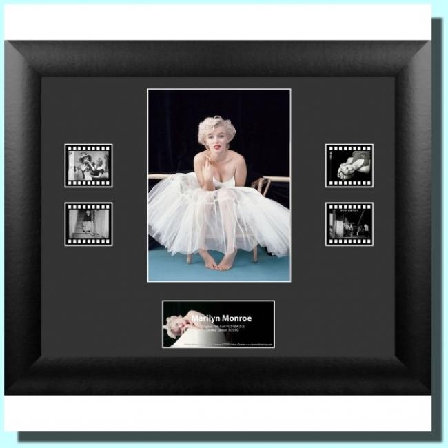 This film cell contains actual film footage from Marilyn Monroe. All film is hand selected and placed in a double matted mounting board. The plaque on the front of each piece lists the name and the limited edition information. Each piece features a certificate of authenticity on the back to guarantee they are receiving genuine product. These make a great gift, and can be used anywhere in a home, office, theatre room, etc. Each film cell, is framed in a black custom frame, has 4 pieces of film, It is a limited edition of 2500 pieces. The film may vary from the catalog image since the film is hand selected.
