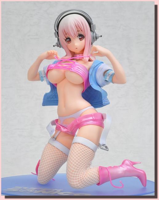 From the Anime series Nitro Super Sonic comes this great 1/5-scale PVC statue of Super Sonico Candy Pink in a candy pink bondage costume with the guitar aside. Her beautiful breasts loosely tied by strips and the white knee socks that tightly bite the edges of her slim legs make her looks so irresistible!