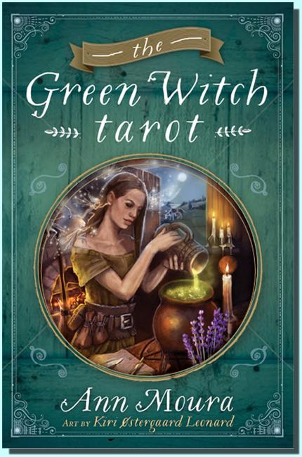As a current trend there are quite a few Wiccan and witchcraft tarot decks on the market; each one is attractive and sincere in it’s own right, but none is as mindful, thorough, complete and beautiful as Ann Moura’s Green Witch Tarot. A vast amount of thought and knowledge has gone into creating this deck and artist Kiri Ostergaard Leonard has parlayed this into gorgeous and detailed images.