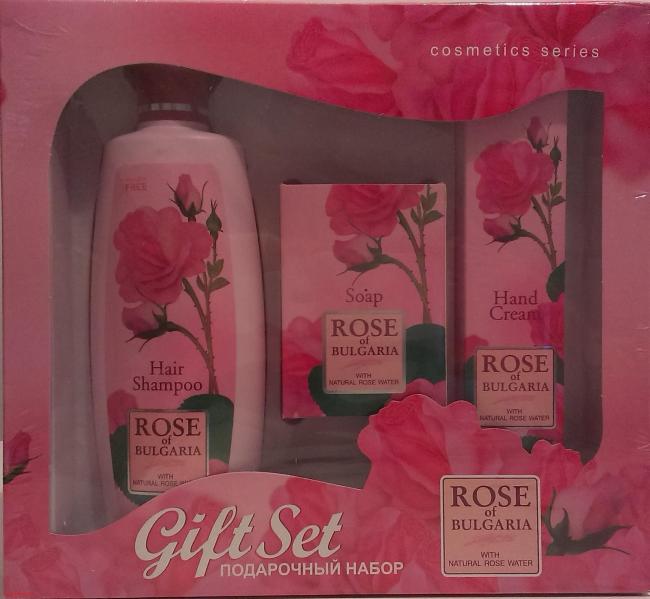 Rose of Bulgaria dárkový set šampón, krém na ruce a růžové mýdlo