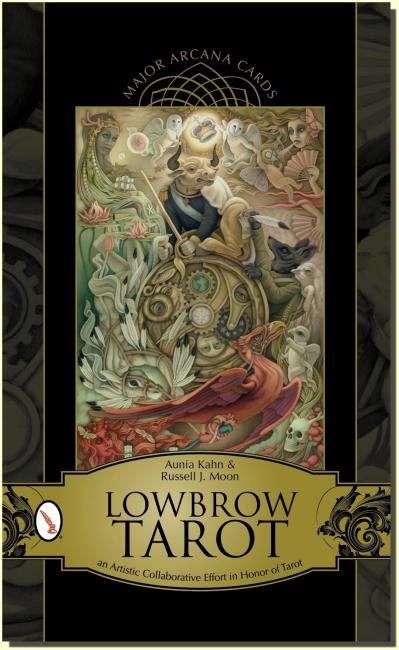 Renowned Tarot artist, Aunia Kahn and author Russell J. Moon, showcase 23 Lowbrow Tarot artists who used their creative genius and unique styles to produce a 22-card Major Arcana Tarot deck in the rugged glow of the Lowbrow Art movement. These new and original works have been fashioned by accomplished artists: