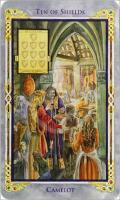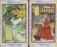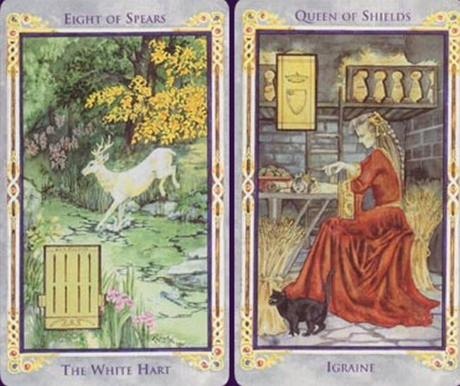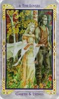 Included is a 72-page booklet which describes the mythic image on each card along with the divinatory meanings. The Horned One (formerly The Devil) is here named Cernunnos. You will learn who this deity is and his history. The Universe becomes The Giant s Dance, which relates to the mythic construction of Stonehenge. The Three of Swords is Palomides, the Saracen Knight who laments for his lost love, Isolt. The Nine of Cups is the Healing of the Maimed King, which describes how the Wasteland is renewed with the healing of its King on the sacred isle of Avalon. The booklet also includes instructions for two spreads. If you work with the Tarot, you will find that the myths illustrated on these cards will allow you to glean new interpretations and ideas from the cards. If you collect Tarot decks, the beauty and meaning of this deck will make you want to add this deck to your collection. If you love the Arthurian myths, you will want this deck for its beautiful depictions of the events in the Arthurian legends. And if you want to learn the legends of Camelot, these cards can even function as "flash cards," allowing you to easily learn and recall the adventures of the Arthurian knights.