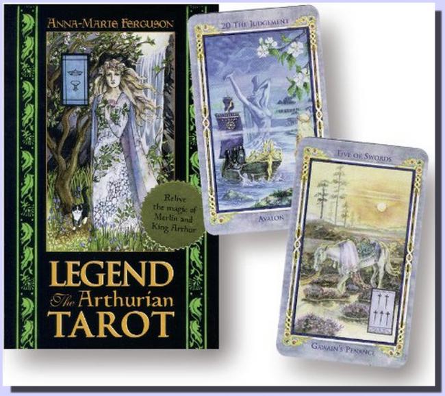 That is exactly what Anna-Marie Ferguson has done with her beautiful deck, "Legend: The Arthurian Tarot. "The cards are meticulously painted in beautiful watercolor and framed by Celtic knotwork with jewels.