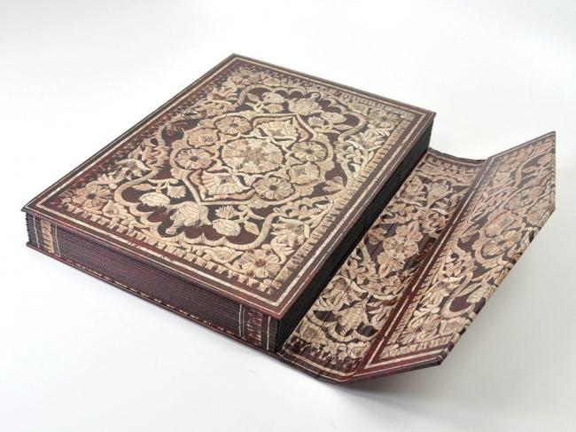 Desky ze 100% recyklovatelného materiálu zhotovené v Evropě. Velikost 330x240 mm, 11 vnitřních kapes formátu A4. Desky jsou opatřeny snadno snímatelným štítkem. Kolekce Stitched Splendour - vyšívaná nádhera Zápisníky Rosa jsou imitací španělské kožené vazby z 18. století. Původní svazky byly zdobeny technikou ploché výšivky, kdy zlaté nitky protínaly kůži sotva znatelnými stehy. Zlatnictví je skvělým příkladem jak dekorativní umění dokáže přetvořit praktické předměty na mistrovská díla, ve kterých se prolínají forma a funkce. Bylo vyvinuto před více než tisíci lety a svého rozkvětu dosáhlo ve středověku ve stylu Opus Anglicanum, kterým byla zdobena sakrální roucha a závěsy. Dnes je umění metaliského vyšívání velmi vzácné a používá se výlučně pro důležitá roucha duchovenstva a královských rodin.
