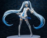 The coloring of the popular Hatsune Miku figure has been switched over to the Snow Miku color scheme, with her translucent skin glowing and snowflake patterns added to various areas of her outfit creating a mystical atmosphere to the figure.