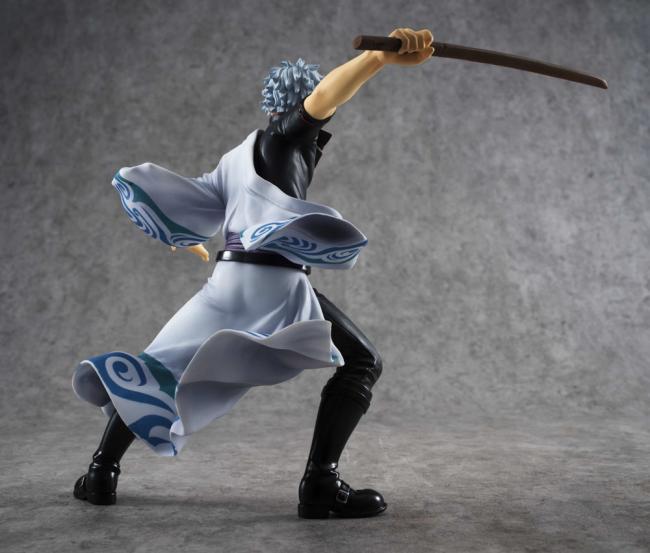 Special care was taken to capture the movement of Gintoki s clothing as he swings back his katana in a stance ready for battle.