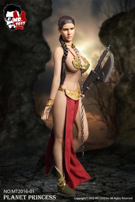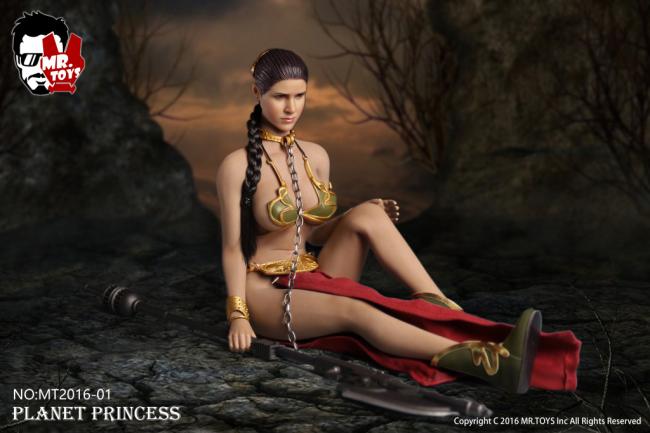 Mr Toys 1/6th scale Planet Princess Head Sculpt and Accessories Set aka Slave Leia in bikini will come with Head sculpt, Slave Clothing, Neck ring, Wristband, Armbands, boots, weapon.