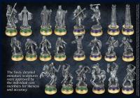 The 32 playing pieces are precise miniature sculptures in fine pewter of the actual cast members and each likeness is so realistic-they were personally approved by the individual actor. Board measures 15" by 15".