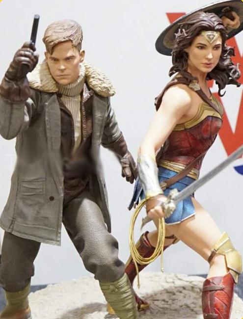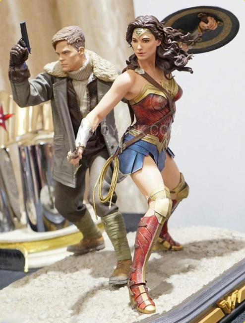The 1:6 statues feature Steve Trevor (based on Chris Pine s likeness) alongside Wonder Woman, both reared back in their respective fighting stances. Trevor is Wonder Woman s primary love interest in the DC Comics series and a member of the US Army Air Corps. The statue stands 13.32 inches tall and all statues were sculpted by DC Collectibles artist James Marsano.