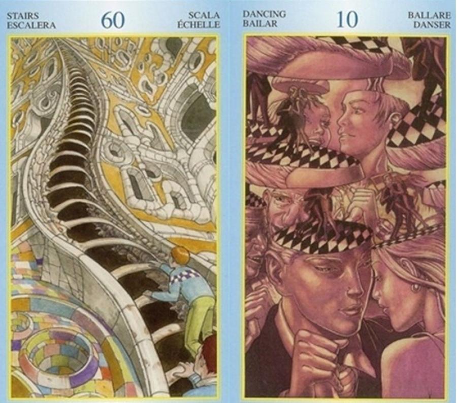 They are not a tarot deck, but a unique and independent mode of intuitive reading. The work of art is a fantasy of surreal landscapes and scenes, with many elements to awaken the imagination.