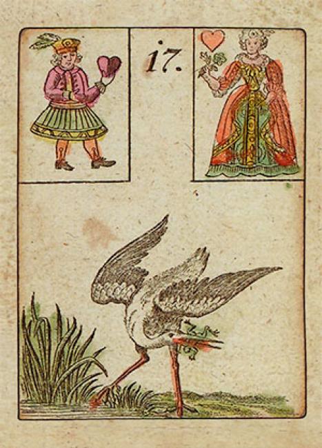 Fifty years later the cards were used for divination by Mlle Lenormand. This Petit Lenormand deck has 36 cards. The booklet includes instructions for both the game and the oracle, in English, French and German.