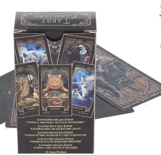 From the artwork of world-renowned fantasy artist Lisa Parker, Tarot Familiars is a deck of charm, mystery, and animal magic. Obsahuje 78 karet a stručný návod v angličtině, Es, I, F. De.