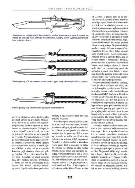 Praktická encyklopedie Igora Skryleva přibližuje, jaký nástroj či zbraň si zvolit, jak si ji svépomocí vyrobit a následně ji správně používat. Popisuje veškeré spektrum modelů a typů chladných a úderně drtících zbraní, vhodných pro naše podmínky. Zvláštní pozornost autor věnuje výběru zbraní pro použití v konkrétních situacích, přičemž podrobně probírá všechna kritéria, která je nutno zvážit při výběru nože, aby v kritickém okamžiku neselhal.