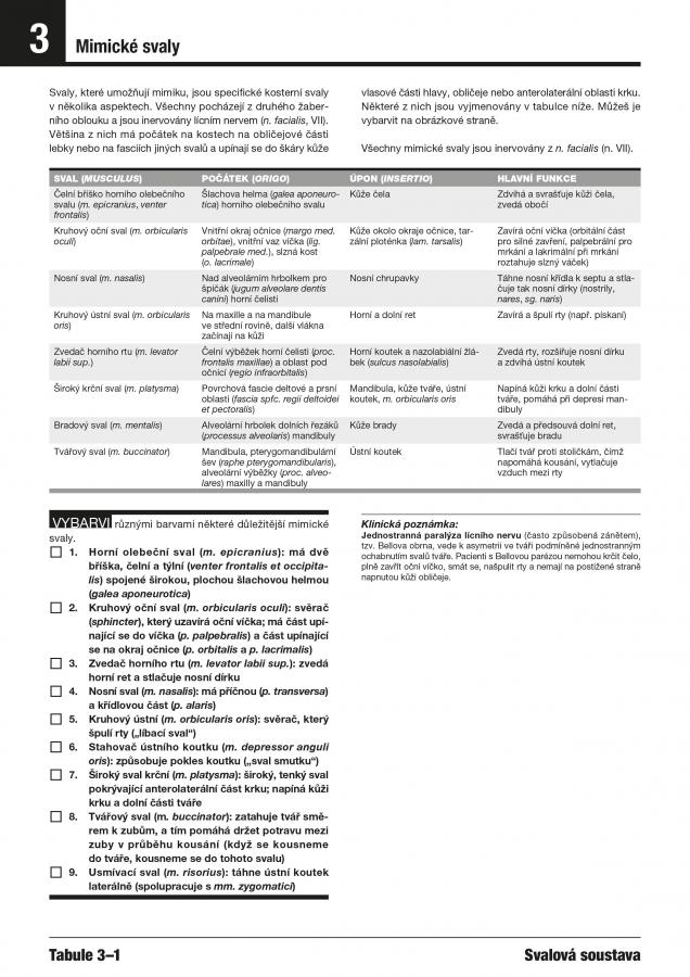 Procvičujte anatomii aktivně – postupným dokreslováním a vybarvováním anatomických struktur podle pokynů v této učebnici.