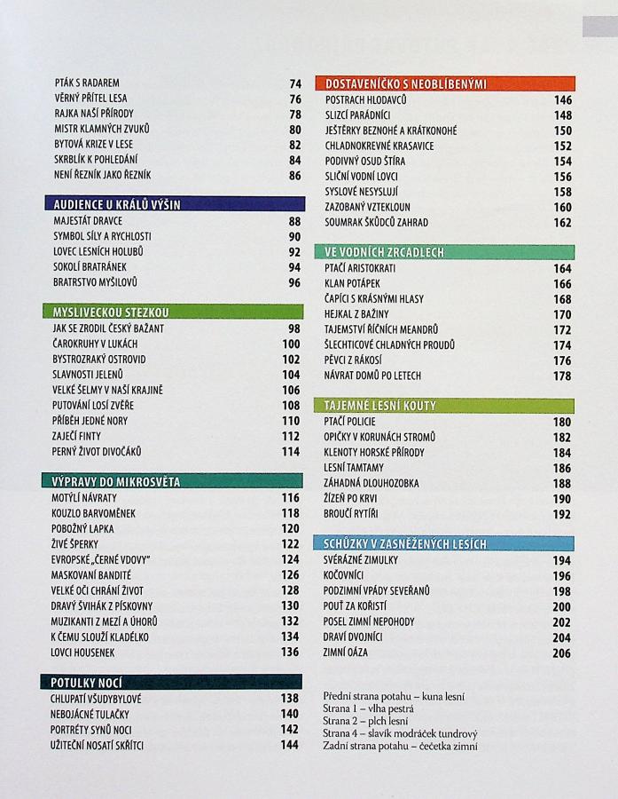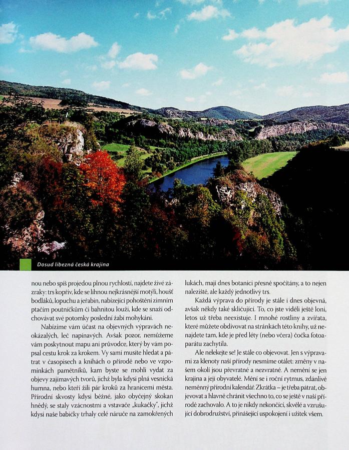 Fotografický průvodce českou krajinou pro malé i velké milovníky přírody přináší originální fotografie zvířat, která zde žijí, doplněné textem zaměřeným na zajímavosti z jejich života. Každá kapitolka je doplněna tipy, kdy se během roku naskýtá nejlepší příležitost dané zvíře u nás zahlédnout. Víte, kdo je skrblík k pohledání, zazobaný vztekloun či hejkal z bažiny? Vydejte se s námi na zvířecí svatby, nahlédněte do ptačích kolébek, pokloňte se králům výšin a prozkoumejte záhady mikrosvěta...