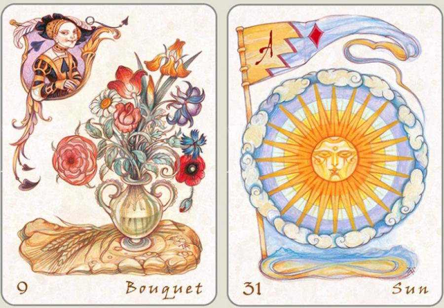 The Lenormand Oracle is a set of 36 cards, each containing simple imagery, a playing card reference, the card s number, its title and sometimes a poem or aphorism.