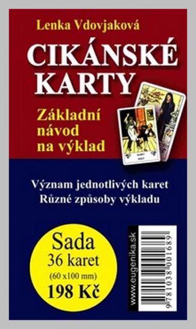 Sada tzv. Cikánských karet, kterých je 36. Jsou to jedny z nejstarších karet určených pro vykládání a věštění. Je k nim přiložena brožurka, ve které najdete vysvětlení, co jednotlivé karty znamenají, čili jak si vysvětlit jejich poselství při výkladu, a to v kategoriích: hlavní význam, láska, zaměstnání, zdraví.