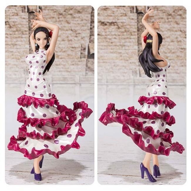 From the Dressrosa Saga comes Violet in her ruffled dancing dress! Her feminine silhouette and billowing dress make for a beautiful addition to the Figuarts Zero line. The use of pearl painting further accentuates Violet s gorgeous appearance and the movement in her pose. Set comes with a special display stand. Measures over 7-inches tall. Ages 15 and up.