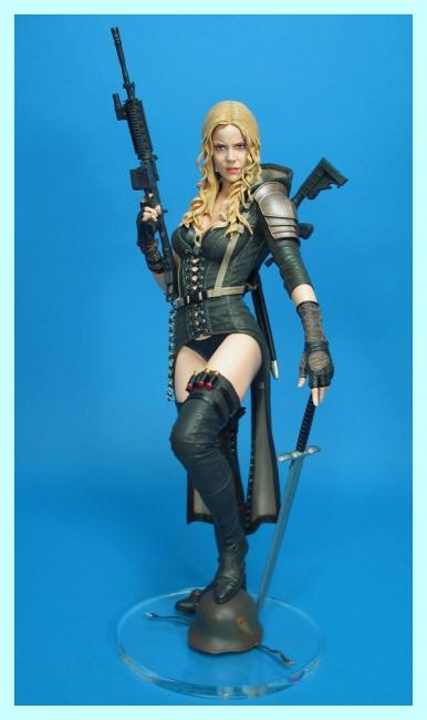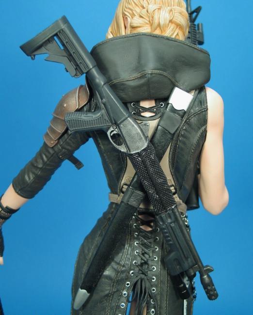 This expertly crafted large scale statue stands an amazing 18" tall and includes M-4 rifle, shotgun, sword, authentic costuming and stunning character likeness.