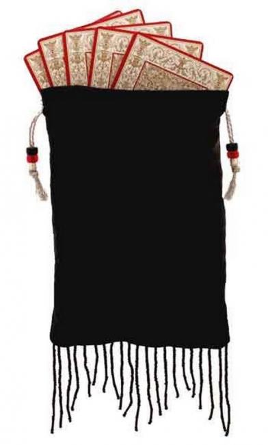 Pure silk-satin black/red bag with glass bead fringing - see the picture in which the deck is shown with the Victorian Romantic cards. Please note, this bag does not have a printed picture though it is hand-finished by us (we add the cording, beads etc). It is FREE with the deck.