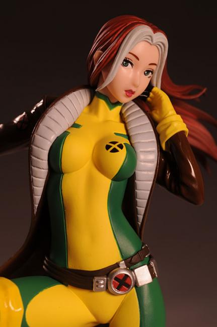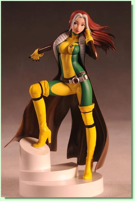 Soška Rogue vytvořená podle předlohy figurální řady Bishoujo (japonský výraz pro krásnou ženu) vycházející z japonské formy dějového vyprávění anime (the series of bishojo inspired statues, based on the ladies of Marvel comics) je vysoká cca 18 cm s detailním zpracováním.