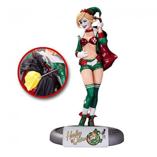 The Batman DC Comics Bombshells Holiday Harley Quinn Statue measures approximately 10-inches tall.