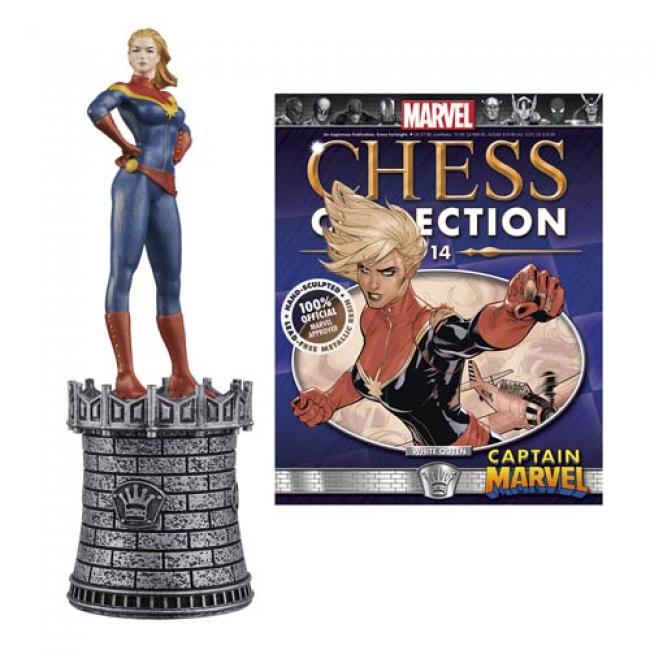 Decide the fate of the Marvel Universe over a game of chess with the #14 Marvel Captain Marvel White Queen Chess Piece with Magazine! Piece by itself measures about 5 1/2-inches tall. Ages 14 and up.