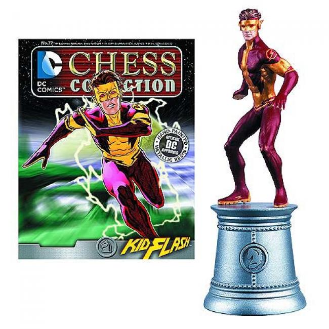 The DC Chess Collection continues with the Justice League chess set which offers the comic fan and chess enthusiast alike the chance to collect fantastic and unique chess pieces, vivid representations of some of DC s greatest characters. This Kid Flash White Knight chess piece is superbly rendered, cast from a specially formulated metalized resin and painted by expert model makers. The Kid Flash White Knight chess piece is accompanied by a fascinating 16-page magazine featuring superb DC Comics artwork plus vital chess tips for players of all levels. The Kid Flash White Knight Piece is #77 in the DC Superhero Chess Collection. Ages 14 and up.