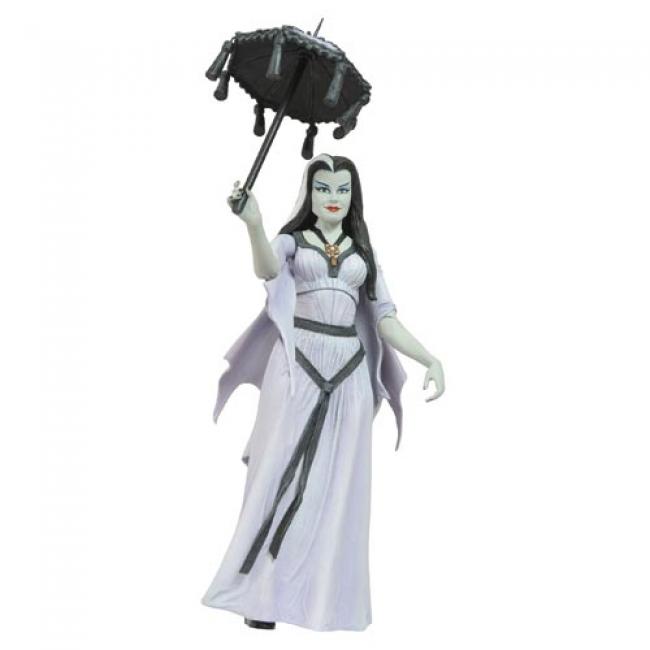 The Munsters are back with this Munsters Select Raceway Lily Munster Action Figure! An essential Series 3 Munsters Select figure, Raceway Lily stands 7-inches tall, is fully poseable, and includes 1 piece of the staircase at 1313 Mockingbird Lane. Collect all 4 pieces and build the coolest diorama ever! If you re a fan of the gothic comedy TV series from the 1960s then you must own the Munsters Select Raceway Lily Munster Action Figure. Ages 8 and up.