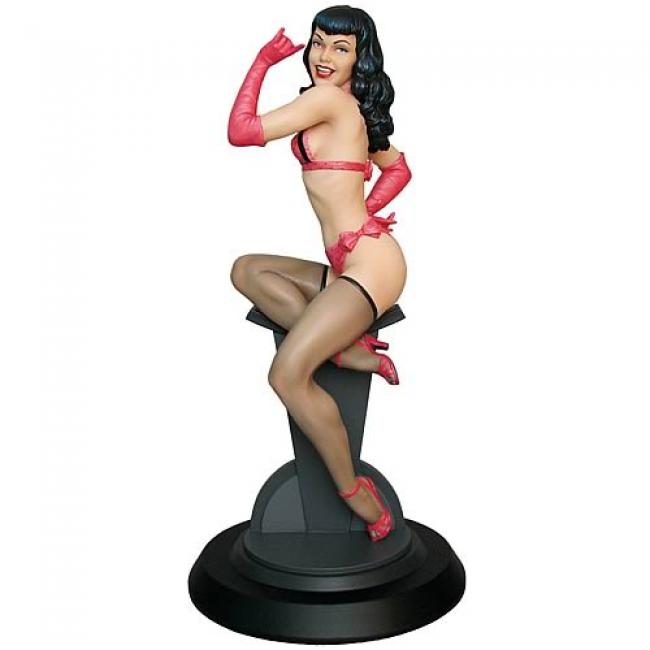 Pin-up starlet Bettie Page springs to life with this great, sexy mini statue! Based on the iconic Girl Of Our Dreams pin-up drawn by Dave Stevens, this shows a coy, barely-clothed Bettie in silky thigh-high stockings, dazzling pink bikini and sexy pink gloves.