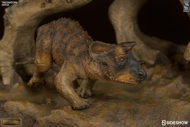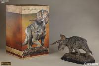 With a name that means "three-horned face", Triceratops is one of the most famous dinosaurs, and one of the last ever to walk the Earth. Thought to have been hunted by the Tyrannosaurus Rex, the massive barrel-ribbed herbivore used its spectacular brow horns and broad curving neck frill to protect itself from predators. Designed with the insight of renowned paleoartists, Sideshow s artists have captured the magnitude and grace of the Triceratops with impressive realism. Cast in polystone on a themed base, this museum quality piece is guaranteed to capture the imagination of dinosaur enthusiasts.