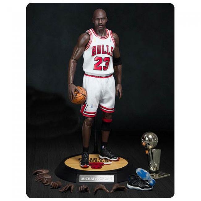 Wanna, wanna, wanna be like Mike? Your first step is to pick up this amazingly detailed Series 1 Michael Jordan Bulls no 23 Home Edition White Jersey Real Masterpiece Action Figure that features an authentic, lifelike head sculpt of Michael Jordan, hand painted with a multilayer paint application. His NBA-MJ body has 30 points of articulation, and the height is scaled to Jordan s actual height. So, instead of the usual 12-inches in 1:6 scale, this action figure stands about 13-inches tall! Check out the details below for accessories and more exciting features.