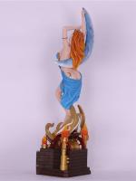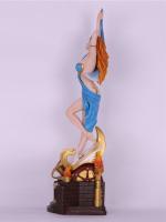 Her flaming hair that matches the base, an ocean blue dress wrapped around her body. She bares her skin across the night, leaning against the moon what a beautiful collection she will add to your room.