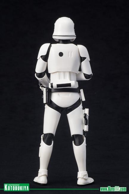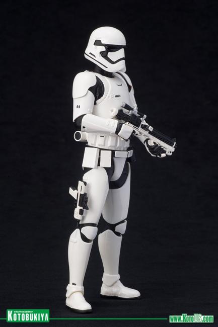 The First Order Stormtrooper features magnets in the armored feet for added stability on the included base.