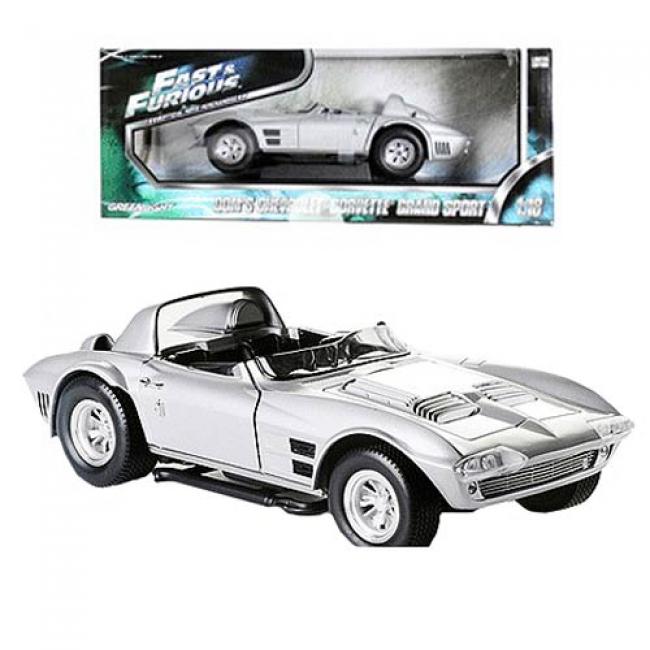 The Fast and the Furious Dominic s Chevrolet Corvette Grand Sport 1:18 Scale Die-Cast Metal Vehicle is a gorgeous reproduction of the car seen in the The Fast and the Furious movie series. Recreated as a beautiful 1:18 scale die-cast metal collectible, this awesome silver-colored vehicle is a must-have for fans of The Fast and the Furious. Ages 14 and up.