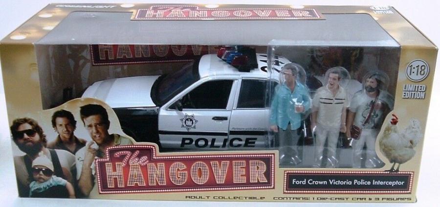 Fans of the hit The Hangover film can now own a part of the movie! The Hangover 2009 Movie 2000 Ford Crown Victoria Police Interceptor 1:18 Scale Die-Cast Metal Vehicle with Figures features the police car from the movie. Made from die-cast metal, this great vehicle even comes with scale figures Stu, Phil, and Alan - it is a must-have for fans of The Hangover! Exquisitely crafted in the 1:18 scale. Limited Edition. Ages 15 and up.