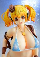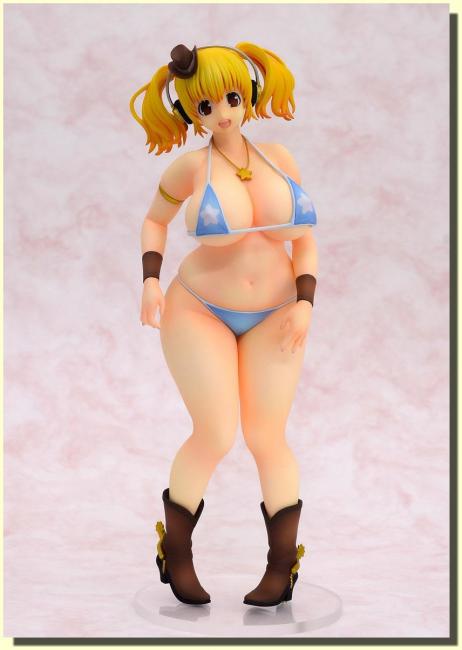 Super Pochaco, Super Sonico s best friend, gets a cowboy makeover! The Super Pochaco Cowgirl 1:6 Scale Statue finds the buxom blonde with pigtails, in a blue bikini, jean shorts that miraculously seem to be falling down, and brown boots. She is even wearing a little cowboy hat above her headphones! In 1:6 scale, Super Pochaco measures about 10 1/4-inches tall.