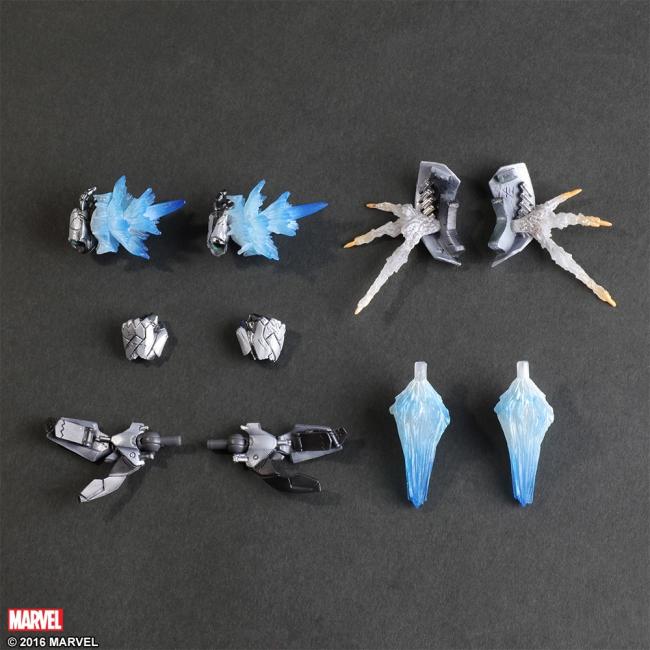 The panels and plating of his suit are inked in to elevate his refined mechanical image like never before. There are several special effect pieces included, such as the repulsor rays from his palms, jet emissions on his feet, micro-missiles that project out of his thighs, flaps on his back, and air brakes on his legs that open and close, to exemplify the functionality of his suit.