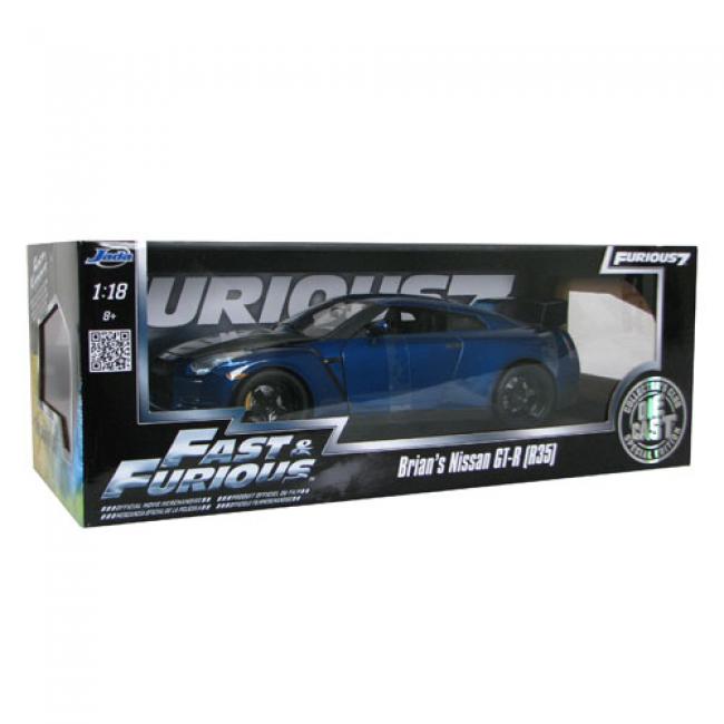 The iconic Nissan GT-R from the Fast and Furious series. Featured in Furious 7, Brian s highly modified Nissan GT-R will out-race the competition with lightweight aero modifications and performance wheels! With the Fast and Furious Nissan GT-R 1:18 Die-Cast Vehicle, assemble your own fast team and save the day! Ages 8 and up.