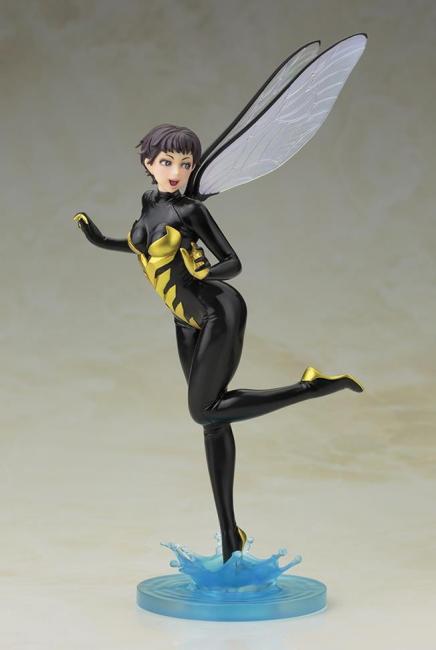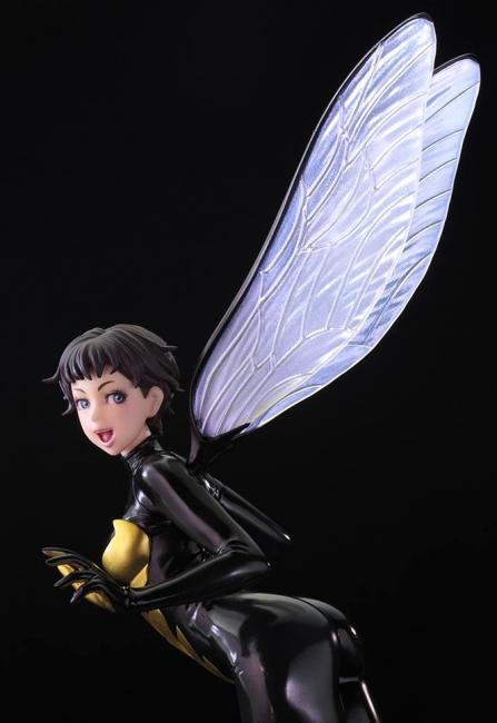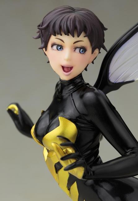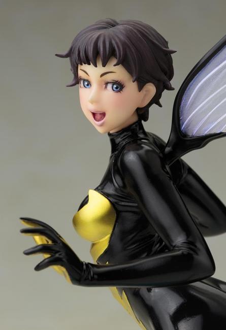 This Marvel Comics Wasp Bishoujo Statue will keep Avengers fans buzzing! Based on the illustration by master Japanese illustrator Shunya Yamashita, Wasp lightly touches down on a special base designed to look like a splash of water. Wasp looks great in her black and gold costume and iridescent wings. The Marvel Comics Wasp Bishoujo plastic statue stands about 10 3/4-inches tall in 1:7 scale and comes in a displayable window box.