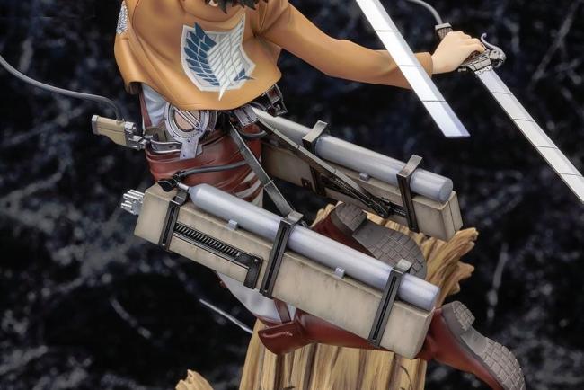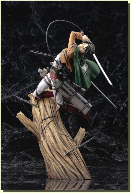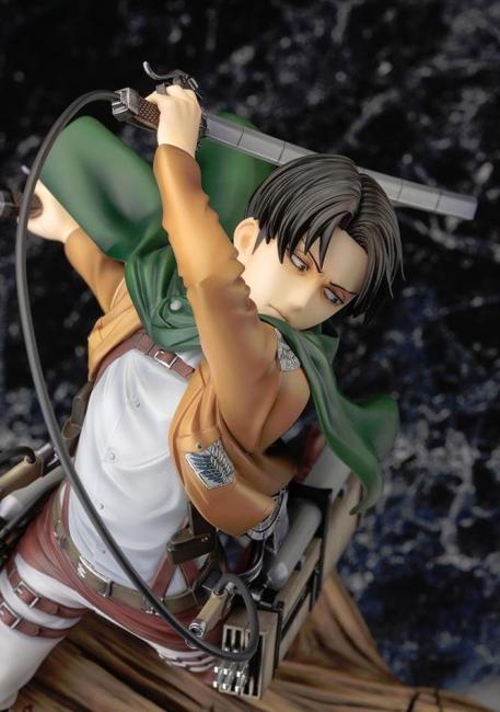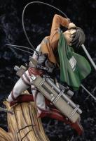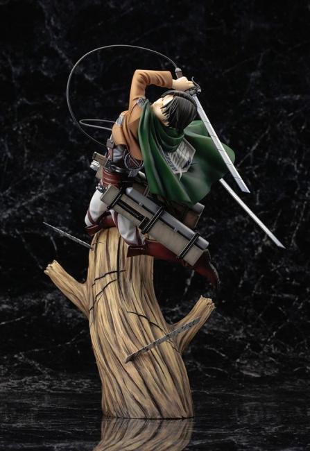 Continue your collection of ArtFXJ statues based on characters from the popular Attack on Titan with Levi! Beautifully sculpted in 1:8 scale, Levi is posed mid-attack Levi seems to float in mid-air due to the way he is attached to the sculpted tree-style base that continues the theme of previous Attack on Titan ArtFXJ statues. Levi features a removable green cloak for your choice of display with or without it. The Attack on Titan Levi ArtFXJ Levi statue stands slightly over 11-inches tall and comes in a window box. Ages 15 and up.