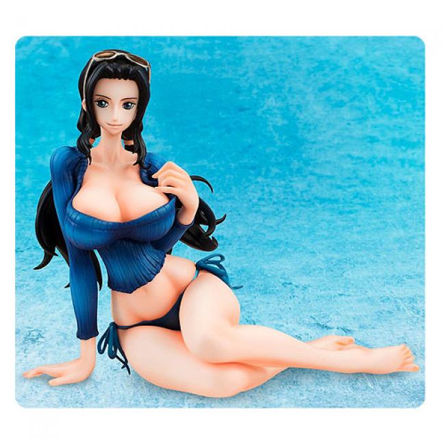 Featuring the sexy female protagonist from the popular anime, this One Piece Nico Robin BB Version Portrait of Pirates Statue features Nico in blue bikini bottoms and long-sleeve top.