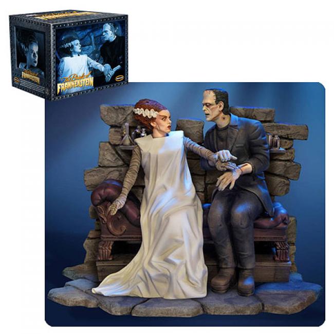 Together... forever! This Bride of Frankenstein 2 Bride and Monster Pre-Assembled Resin Model Kit is a two-figure set that shows a classic pose of both Bride and Monster from the film.