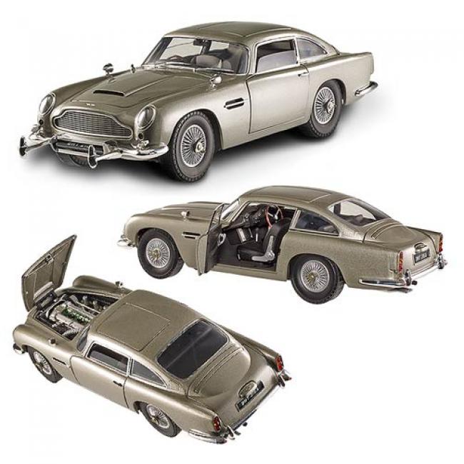 Directly out of the hit James Bond film Goldfinger comes Bond s Aston Martin! This James Bond Goldfinger Aston Martin DB5 1:18 Scale Hot Wheels Elite Die-Cast Vehicle features the impressive vehicle in its distinctive Silver Birch color. This great Hot Wheels Elite Cult Classics Vehicle has been recreated in the 1:18 scale using die-cast metal and measures 12 1/2-inches long x 6 2/5-inches wide x 5-inches tall. Hood opens, but doors do not open.