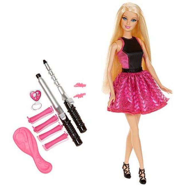 Make up Barbie like never before! Girls can curl her entire head of long luxe hair! Three different types of no-heat curling tools (2 irons and a set of traditional rollers) offer different curled looks and endless styling possibilities. Style even more with the 2 barrettes and included hair bands (with label art!). Then use the tools or included signature-style brush to straighten Barbie s hair and start all over - just like in real life!