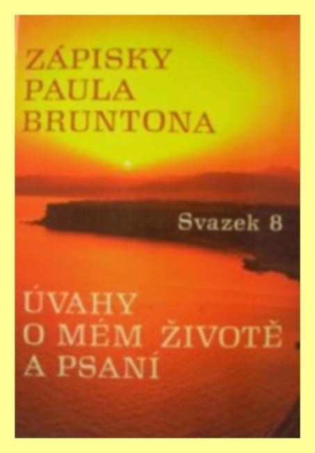 Do hloubky rozpracovaná dvanáctá kategorie ze Zápisků. Úvahy o životě a literární práci Paula Bruntona jsou mozaikou autobiografických citátů z osobních poznámek. Tento svazek shrnuje výběr nejzejímavějších autorových osobních úvah a pozorování. Zasvětil svůj život takové cestě duchovního odhalení, která by byla vhodná pro dobu zmatků a změn. Tato úloha ho přivedla k mnohému putování do středu duše, přes staletí a kolem světa, při neobvyklém hledání Pravdy. Během těchto cest se přiležitostně zastavoval, aby zaznamenal své soukromé dojmy o sobě, své práci, místech a lidech, s nimiž se setkal. Vnitřně byl P.B. učenec a badatel, neúnavně pátrající po filozofických a náboženských idejích a praktikách. zevně se zasvětil úkolu podělit se s ostatními o své těžce získané pochopení tou nejjednodušší, nejvíce inspirující a netechnickou formou, jakou jen mohl vyvinout.