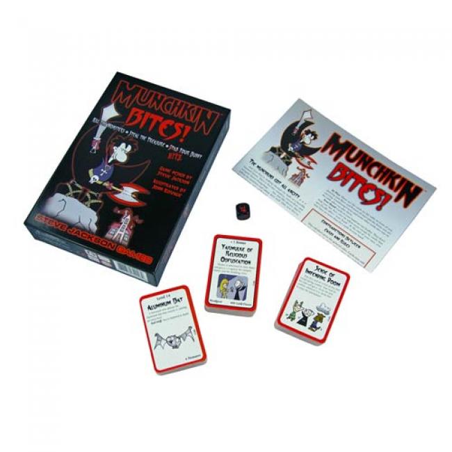 It is the World of Darkness! The Munchkins are now vampires and werewolves and changelings. Bash through the haunted house and slay the monsters. The other monsters, that is! You can t slay your fellow munchkins, but you can curse them, send foes at them, and take their stuff. The Munchkin Bites Game is a standalone Munchkin game that can be combined with others. It includes 168 cards, a unique six-sided die, and a rule sheet. Ages 10 and up!